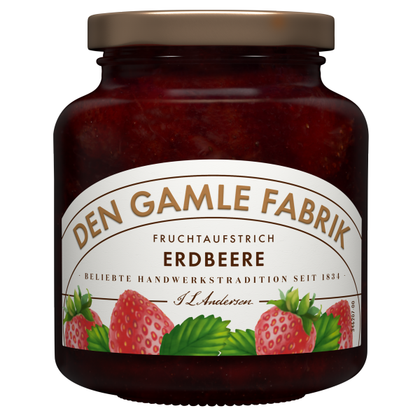 Den Gamle Fabrik's strawberry jam is known for its sweet and fresh taste and large, whole strawberries. It is one of the Danes' absolute favorites and has won numerous taste tests over the years.