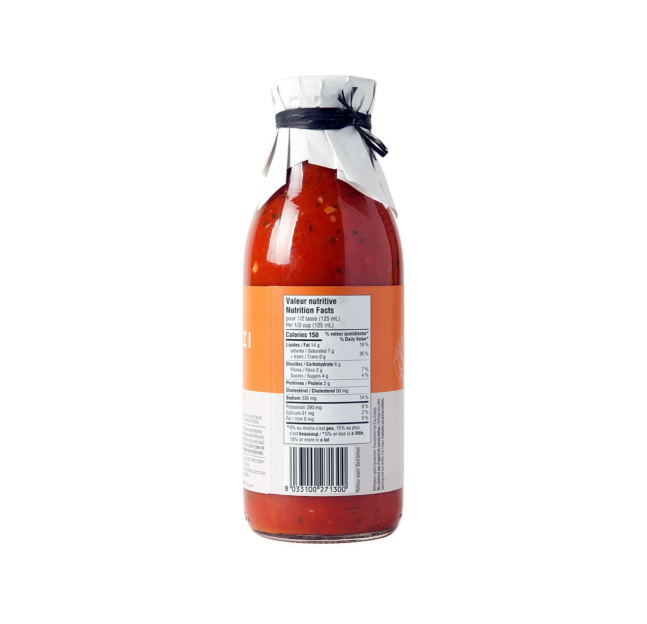 Our vodka sauce is made with just enough cream to let the delicious taste of tomatoes take centre stage. Smooth and seasoned with fresh basil, it is enhanced by a nice parmesan flavour and a subtle nutty aroma.