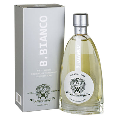 White Dressing obtained from the best Modenese Trebbiano grapes, the must of which ages for at least 5 years in Ash wood barrels that give it fragrance and creaminess without altering its light and clear colour.
